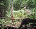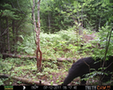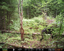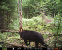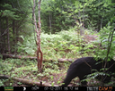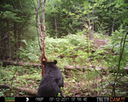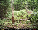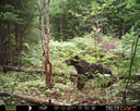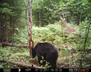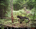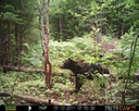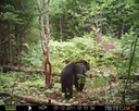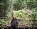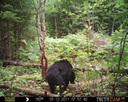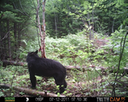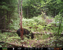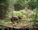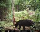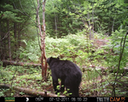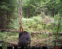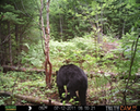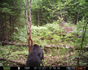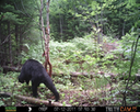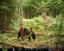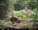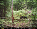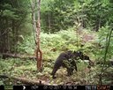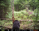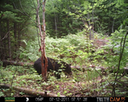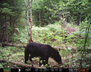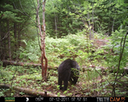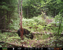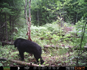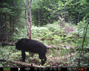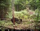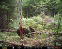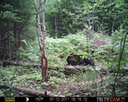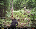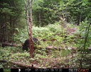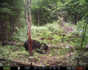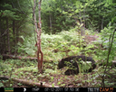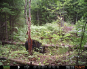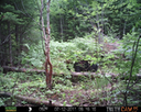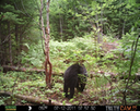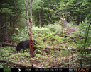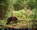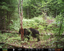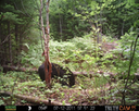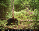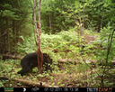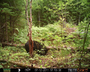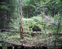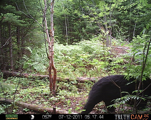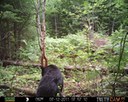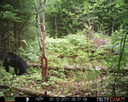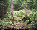 This was a good day for bears. I moved the camera from the compost area further into the woods to another familiar camera location. This is the location that I have referred to as the black bear's comfort zone. In this series of photographs, we will view 120 photographs of a Maine black bear who considers this small clearing to be his home base.