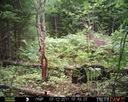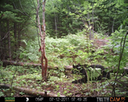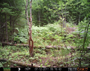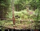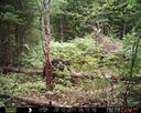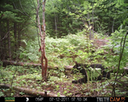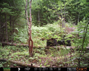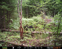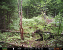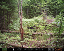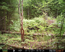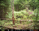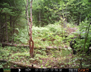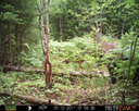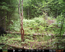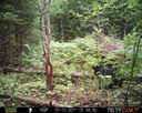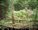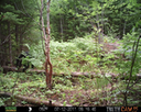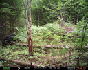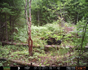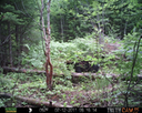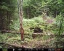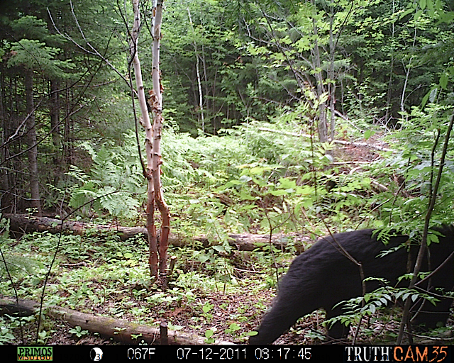 This location is between a quarter and a half mile into the woods from a seasonal road that passes through the hundred acres of Petra, Maine. Four animal trails lead into and away from this clearing. You will see a brush pile in the background, and a small birch tree to the left of center in the photographs. Bears leave messages to one another on this tree, as you will see.
