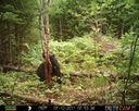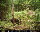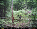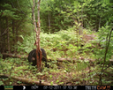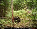 The camera is a Primos Truth Cam 35 wildlife camera, strapped to the trunk of a tree on the edge of the clearing. It is protected from harm by an optional rigid metal exterior case, which will withstand bear attacks, as we have already seen.